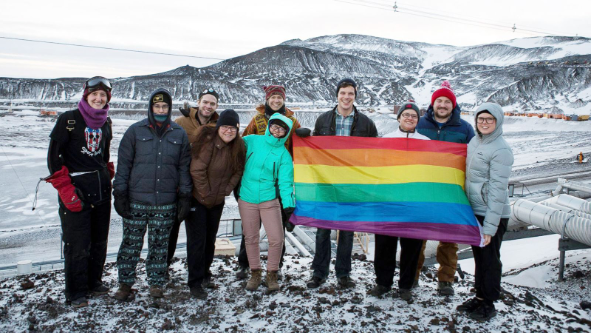 有一天,汤森和同事们把彩虹旗帜拿到外面,拍下照片并发布在社交媒体上。这些照片变成了国际新闻,许多媒体说,这是南极洲的第一次彩虹游行。汤森说:“那时我认识到了旗帜的力量。一方面,我完全被隔离在地球的边缘地带。另一方面,我又是这面旗帜所代表群体的一份子。”